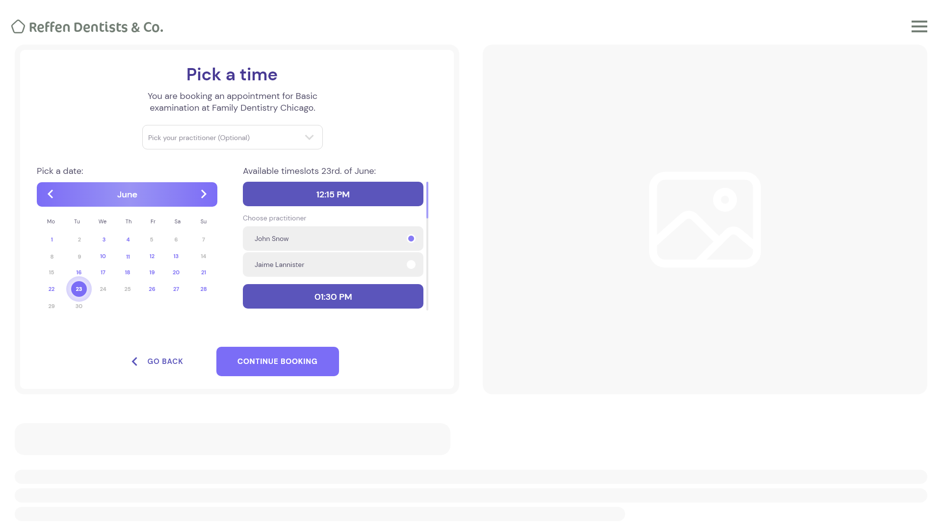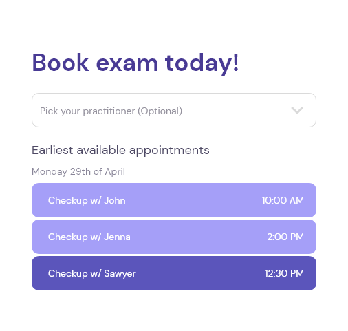This widget skips a few steps of the booking process, allowing for a faster and simpler booking, but the patient will have a much more limited selection of timeslots and options.